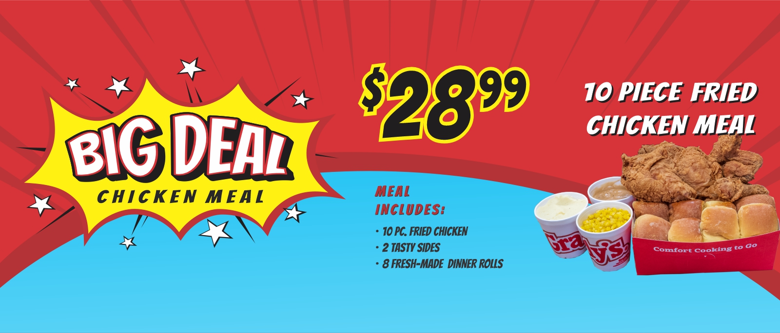 Grandy's is unlike any other quick-service restaurant. Our homestyle meals are made fresh every day. Our chicken, country steaks, catfish, vegetables, and fresh baked dinner rolls are reminiscent of Sunday dinner at Grandma's house. Grandy's delicious country breakfast offers all your favorites which includes hot biscuits, our signature 'Sinnamon® rolls and, of course, scrambled eggs and hotcakes. At Grandy's we've got you covered for breakfast, lunch and dinner.